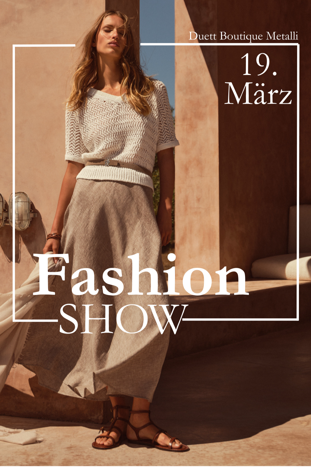 Wir laden Sie herzlich zu unserer Fashionshow am Donnerstag, den 19. März, in der Duett Boutique im Metalli ein.
